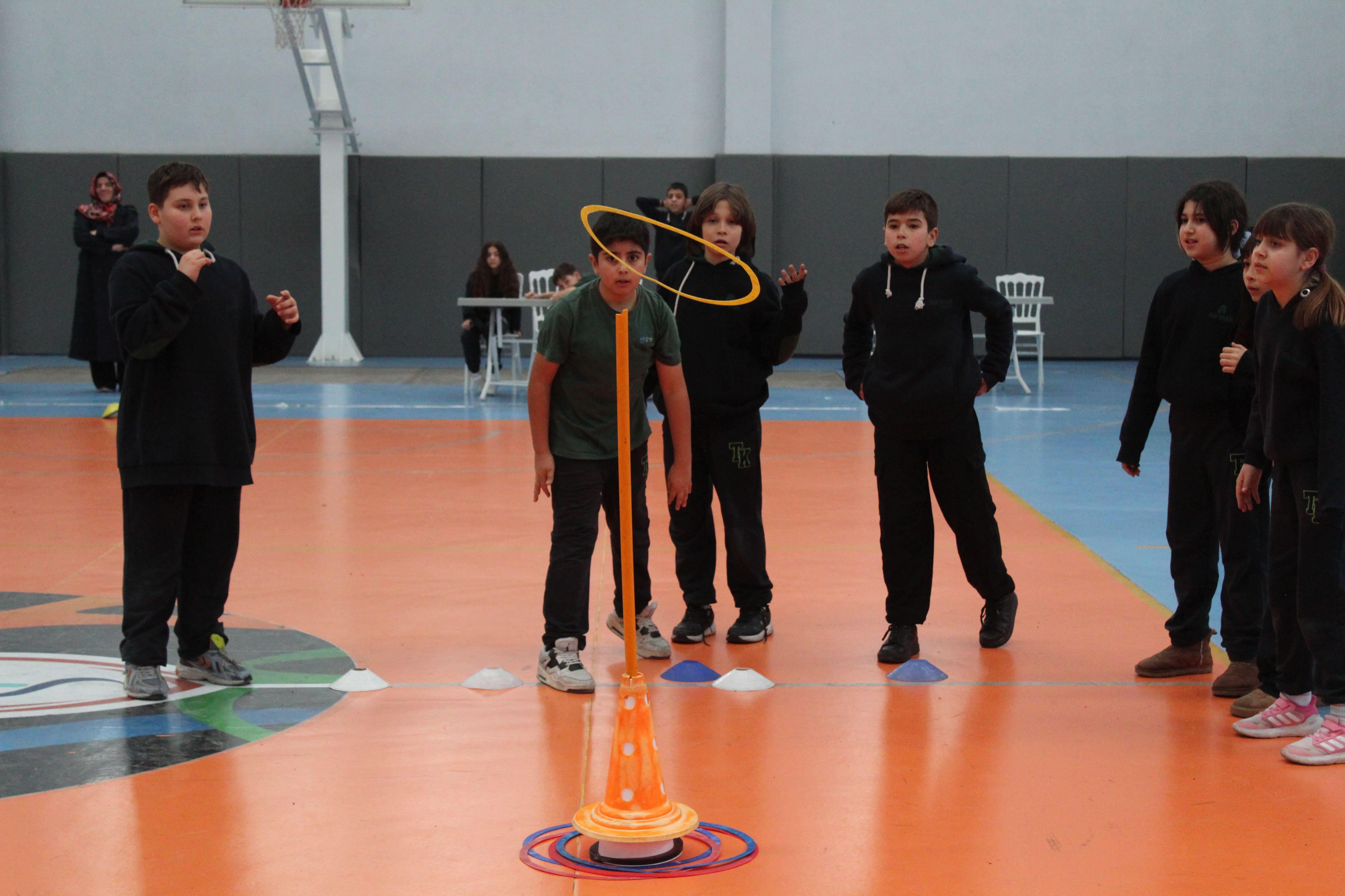 Bugün burası sadece bir oyun alanı değil, dev bir matematik parkuruydu! Öğrencilerimiz; denklemleri çözerek engelleri aştı, geometrik şekillerle dokunulmazlığı kazandı ve zamana karşı yarışarak "Matematik Şampiyonu" olmak için ter döktü. 💦