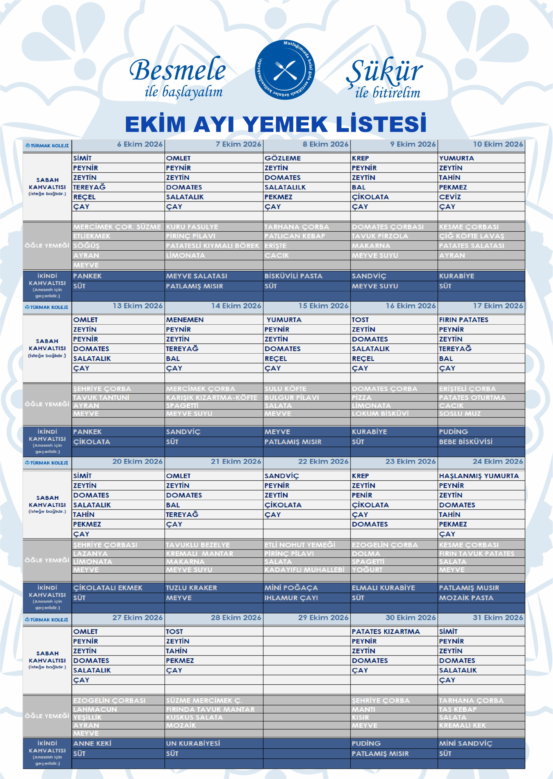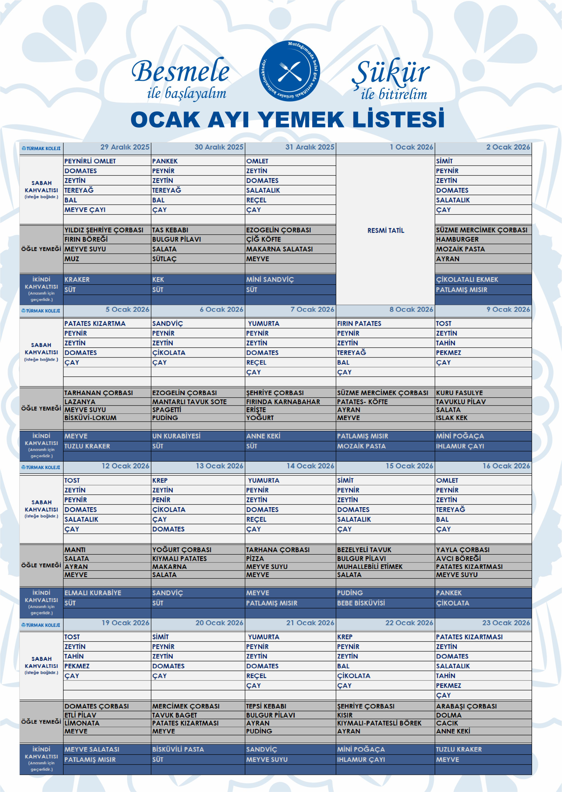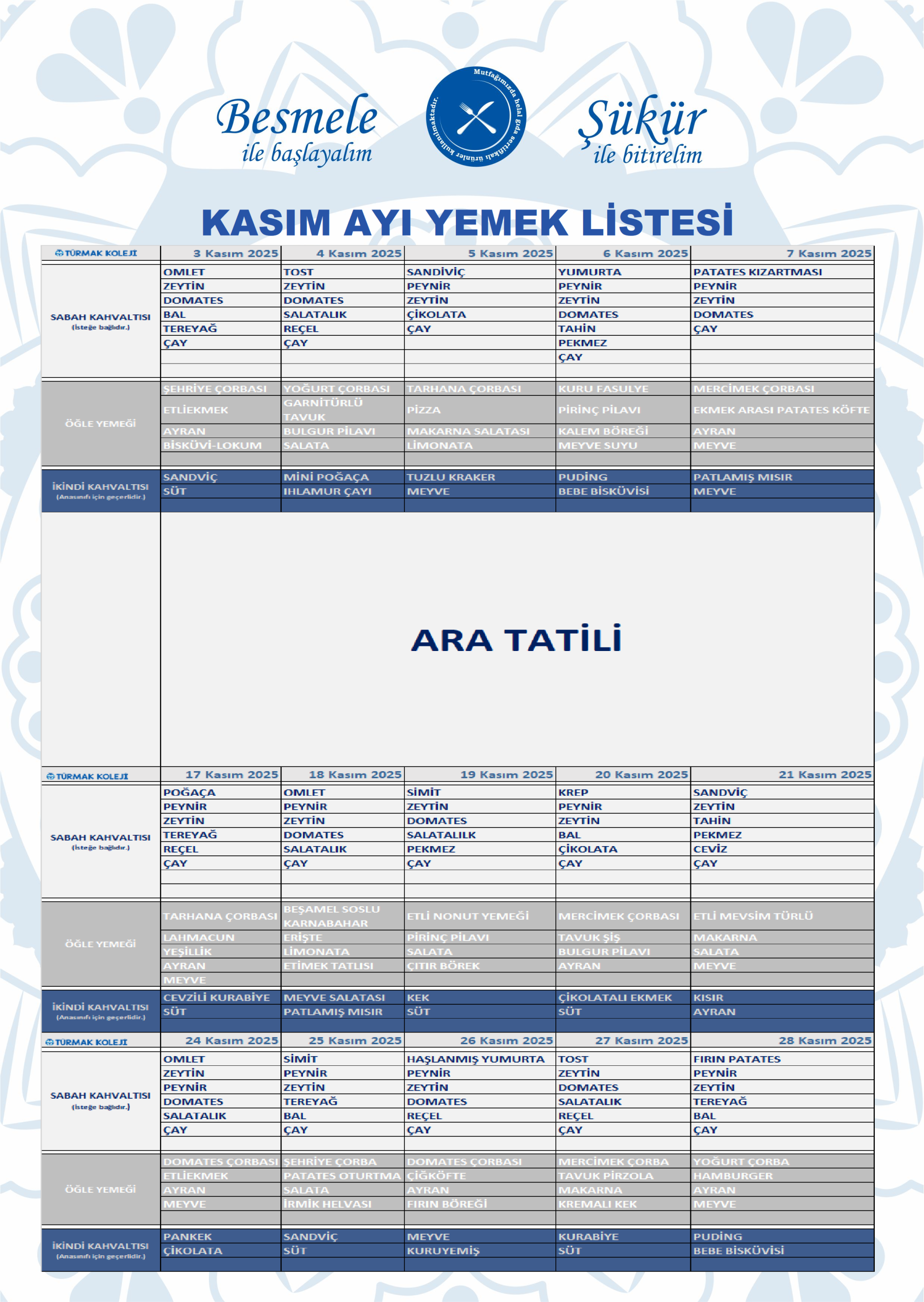 TÜRMAK YEMEK MENÜSÜ