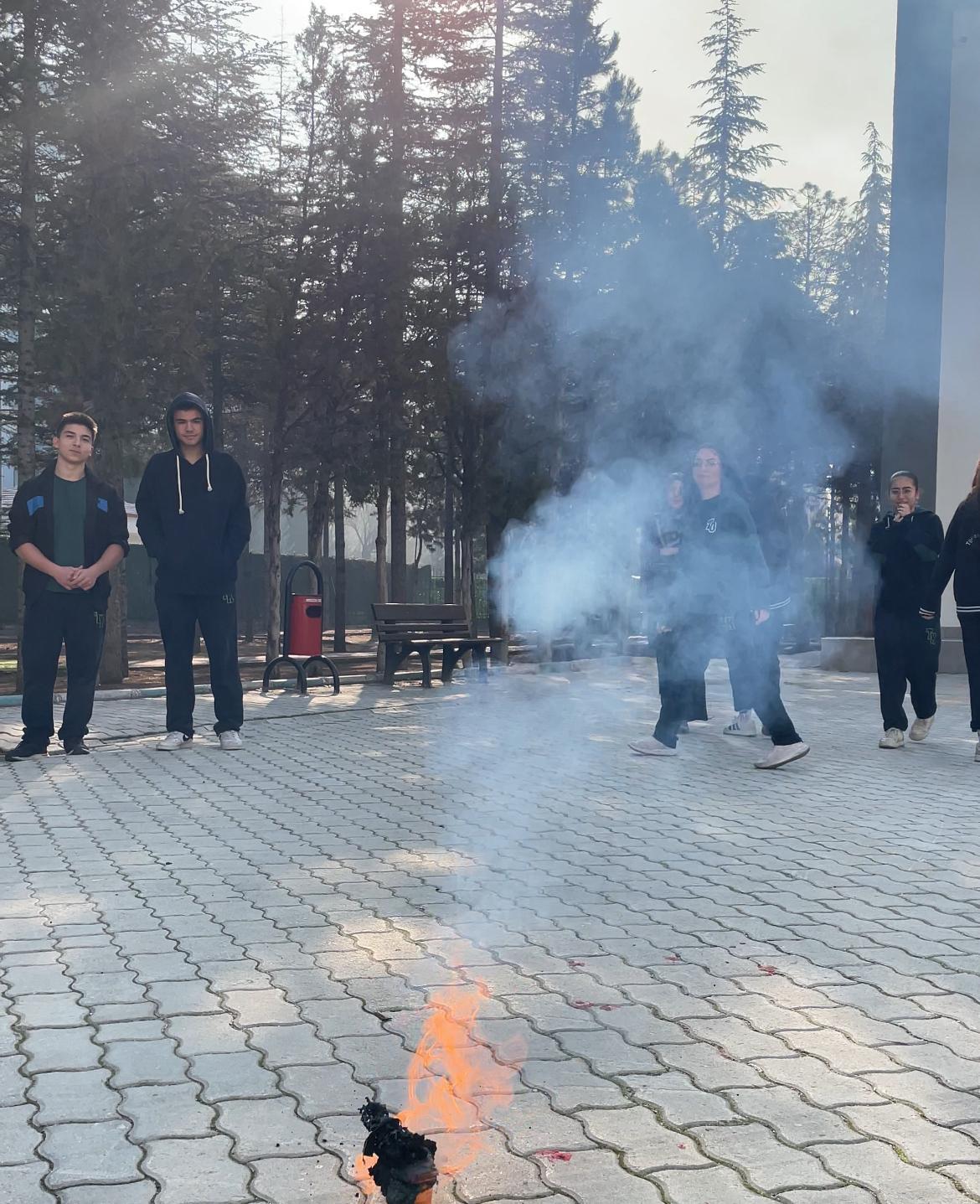 Türmak Koleji Anadolu Lisesi 9. sınıf öğrencilerimizle kimya dersinde deney gerçekleştirdik. Bu deneyimizde yakıcı özellik taşıyan bir maddenin başka kimyasal madde ile teması sonucu yanma olayını gözlemledik.