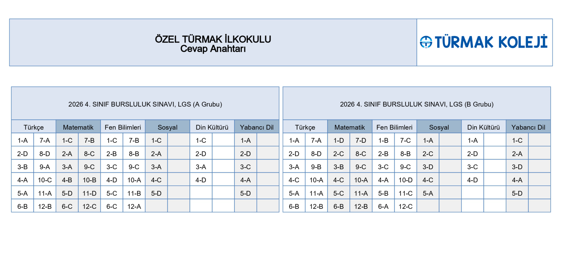 4.SINIF BURSLULUK SINAVI CEVAP ANAHTARI