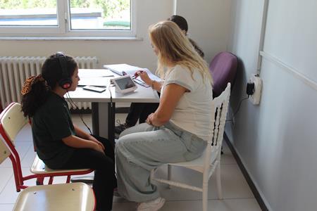 Özel Türmak İlkokulu olarak öğrencilerimizin sağlıklı bir eğitim süreci geçirmeleri en büyük önceliğimizdir. Bu kapsamda, 1. sınıf öğrencilerimize işitme sağlığını değerlendirmek amacıyla odyometri testi yapılmıştır. Alanında uzman sağlık ekibi tarafından gerçekleştirilen testler sayesinde öğrencilerimizin işitme duyularındaki olası sorunlar erken dönemde tespit edilebilmekte, gerekli yönlendirmeler yapılabilmektedir. Eğitim hayatının en temel basamağı olan ilkokul yıllarında işitme sağlığının kontrol altında tutulması, çocuklarımızın ders başarısı ve iletişim becerileri açısından büyük önem taşımaktadır.