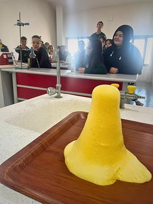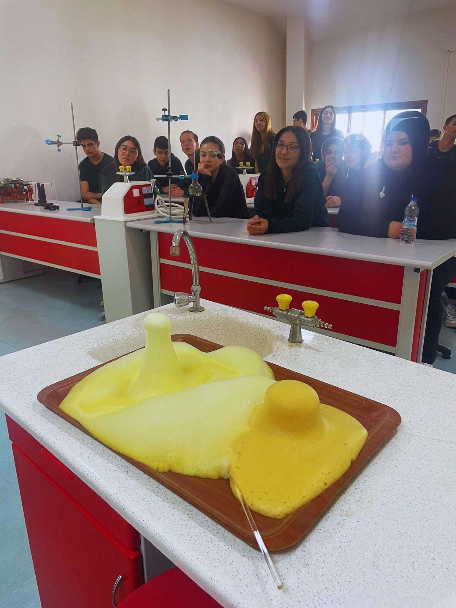 Türmak Koleji Anadolu Lisesi 10. Sınıf öğrencilerimizle Kimyasal olay oldugunun kanıtı olarak renk degişimi ile birlikte kabarcık ve köpürme olaylarının gözlemlenmesini gerçekleştirdik.