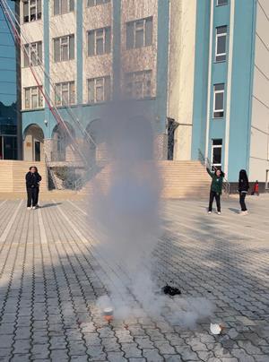 Türmak Koleji Anadolu Lisesi 9. sınıf öğrencilerimizle kimya dersinde deney gerçekleştirdik. Bu deneyimizde yakıcı özellik taşıyan bir maddenin başka kimyasal madde ile teması sonucu yanma olayını gözlemledik.