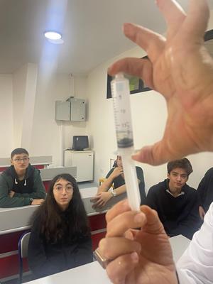 Türmak Koleji Anadolu Lisesi 9. Sınıf öğrencilerimizle Basıncın kaynama sıcaklığına olan etkisi incelendi; Şırınga içerisindeki artan hava hacminden dolayı basınç azaldı suyun kaynama sıcaklığı düştü ve şırınga içerisindeki  su daha düşük sıcaklıklarda  kaynamaya başladı.