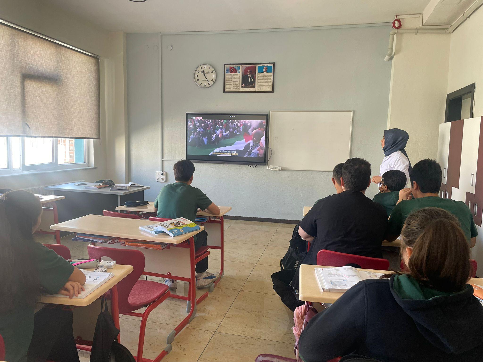 Bakanlığımızın ilgi yazılarında 7 Ekim Salı sabahı ülkemizdeki Tüm okullarda eş zamanlı olarak Türkiye Yüzyılı Maarif Modeli 'Erdem Değer Eylem' yaklaşımı esas alınarak öğrencilerimize Filistin'de yaşanan insan hakları ihlallerinin sona erdirilmesine yönelik olarak Filistin Farkındalık Etkinlikleri düzenleneceği bildirilmiştir. Biz de Türmak Koleji olarak Gazze‘deki soykırımın öğrencilere etkili şekilde anlatılması için bir video hazırladık öğrencilerimizin ve öğretmenlerimizin tam katılımıyla Zalim İsrail zulmüne dur dedik.