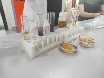 Türmak Koleji Anadolu Lisesi 9. sınıf öğrencilerimizle birlikte Karbonhidratlar ve Proteinler, Lipitler konu kazanımını pekiştirmek amacıyla besinlerde nişasta ve protein varlığını tespit etmek için deneyimizi gerçekleştirdik.
