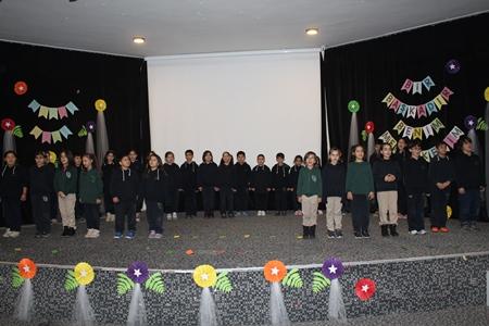Özel Türmak İlkokulu’nda Yerli Malı Haftası kapsamında düzenlenen etkinlikler, öğrencilerimizin emekleriyle renkli ve anlamlı anlara sahne oldu. Gün boyunca sahnelenen gösteriler, izleyenlere hem kültürel hem de eğitsel açıdan unutulmaz bir program sundu. Programın ilk bölümünde 2A sınıfı öğrencilerimizin hazırlamış olduğu “7 Bölge 7 Oyun” halk oyunları gösterisi, Anadolu’nun zengin kültürel mirasını sahneye taşıdı. Minik öğrencilerimiz, yöresel ezgiler eşliğinde sergiledikleri performansla büyük alkış aldı. Ardından yine 2A sınıfının Değerler Eğitimi kapsamında hazırladığı “Bereketli Bahçede Sabah” adlı gösteri sahnelendi. Paylaşmanın, üretmenin ve bereketin önemini vurgulayan bu anlamlı gösteri; izleyicilere değerler eğitiminin günlük yaşamdaki yerini güçlü bir şekilde hissettirdi. Programın devamında İngilizce öğretmenlerimizin rehberliğinde hazırlanan “Bananas of the World” İngilizce gösterisi, öğrencilerimizin yabancı dil becerilerini neşeli ve eğlenceli bir sunumla ortaya koydu. Farklı ülkeleri ve kültürleri tanıtan bu renkli gösteri, izleyenlerden tam not aldı. Günün finalinde ise 3A ve 3B sınıflarımızın hazırlamış olduğu Yerli Malı Koro Çalışması sahne aldı. Yerli ürünlerin önemini, tutumlu olmayı ve bilinçli tüketimi konu alan şarkılarla öğrencilerimiz, güçlü bir mesaj vererek programı coşkuyla tamamladı.