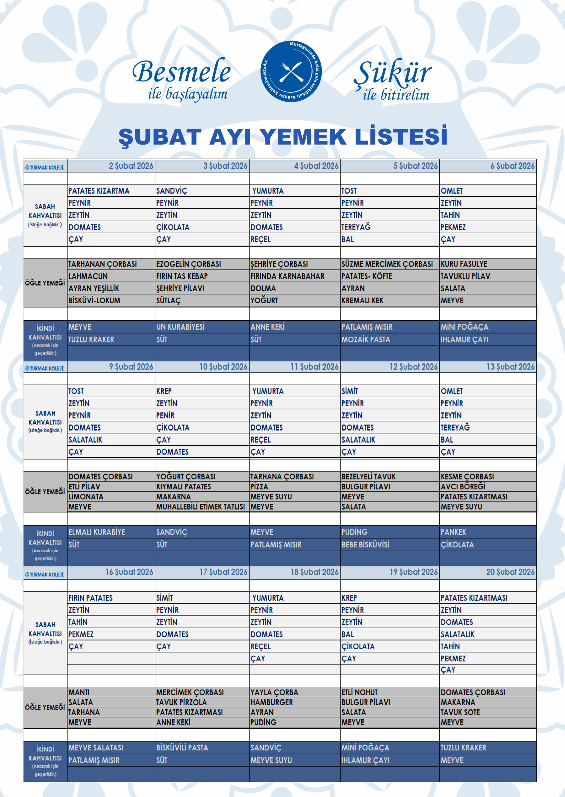 TÜRMAK YEMEK MENÜSÜ